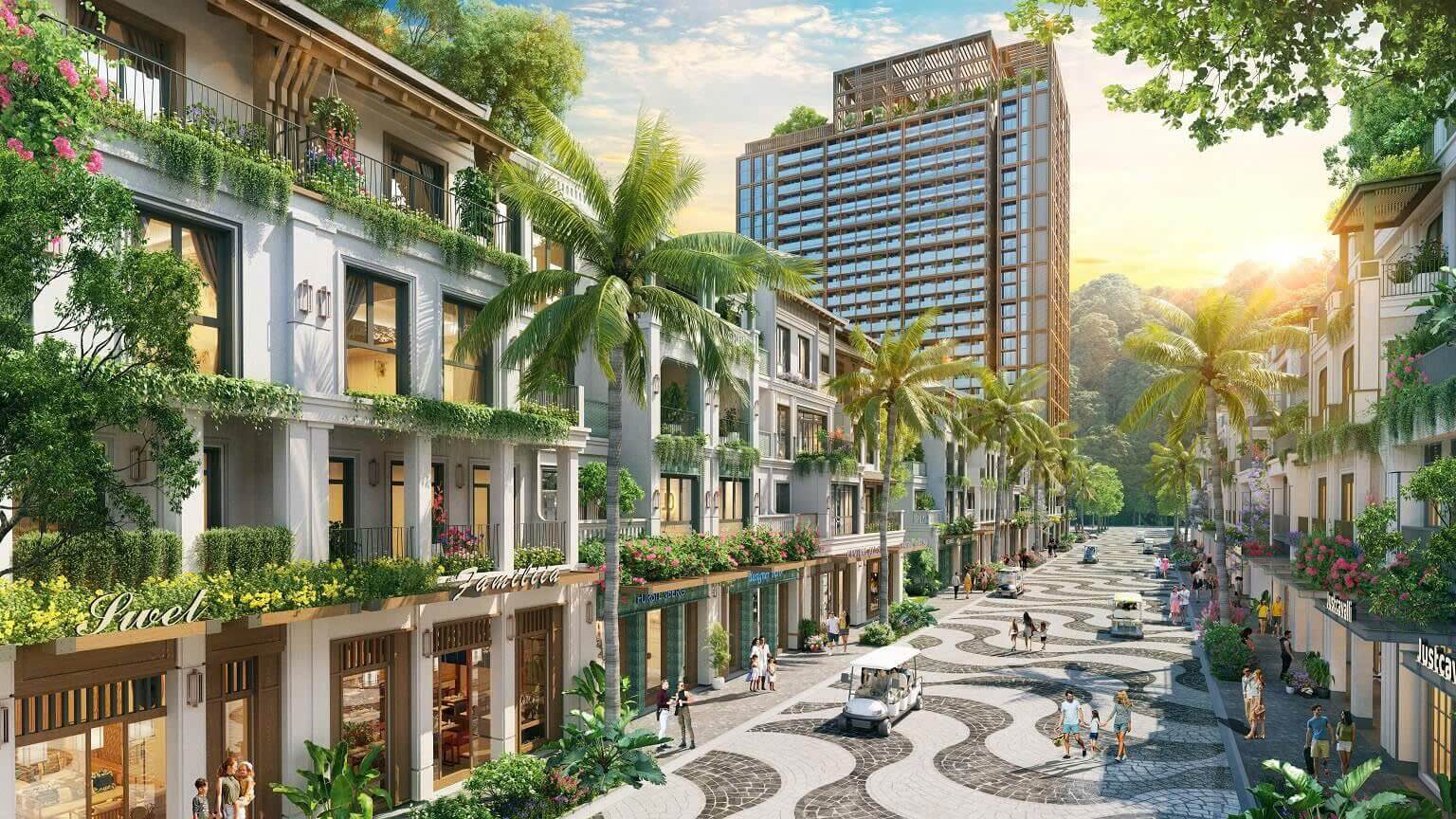 Thể thao và mua sắm: Dự án dự kiến có hồ bơi vô cực hướng biển, trung tâm thể thao – gym – spa hiện đại. Bên cạnh đó là khu shophouse thương mại sầm uất ven sông, phục vụ nhu cầu mua sắm, dịch vụ cho cộng đồng cư dân và khách du lịch.
